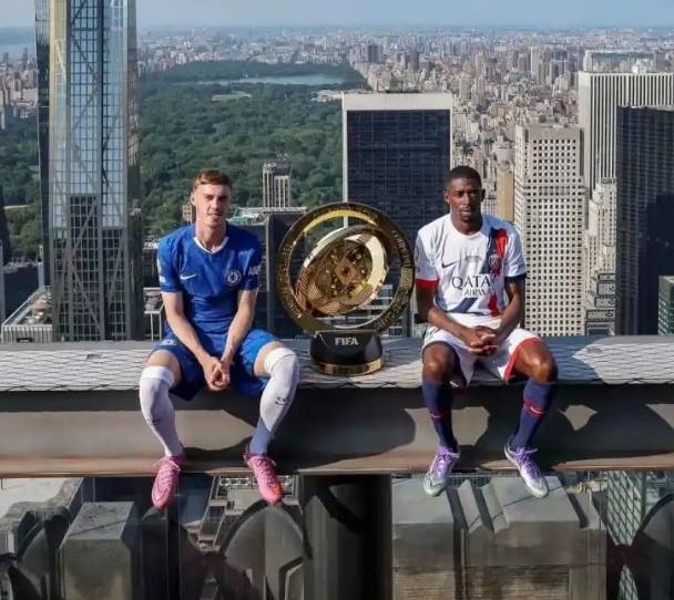 活动当天,帕尔默与登贝莱来到纽约著名的洛克菲勒中心观景台。在这里,他们与闪耀着光芒的世俱杯冠军奖杯进行了一次别具一格的合影。两人的合影方式巧妙致敬了知名照片《大厦之巅的午餐》。照片中,帕尔默和登贝莱笑容满面,身旁的世俱杯奖杯熠熠生辉,背后则是纽约繁华壮丽的城市天际线,高楼大厦鳞次栉比,彰显着这座城市独特的魅力。这一创意十足的合影瞬间在社交媒体上引发广泛传播,球迷们纷纷点赞评论,对即将到来的世俱杯决赛热情更加高涨。